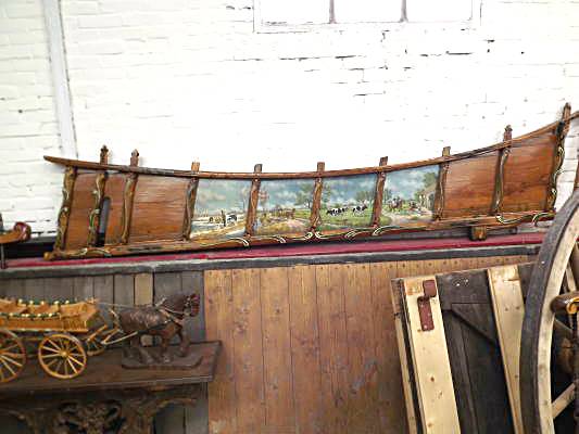 | De naam voorop de zittekist is van het erf waar de wagen thuis hoort. | |