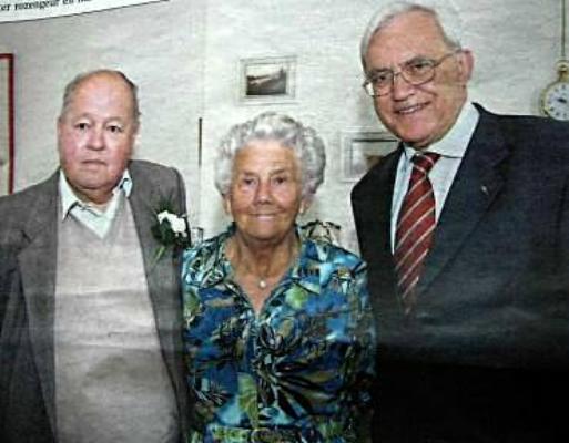 | Echtpaar van der Elst 60 jaar getrouwd. (2007) | Mevr van der Elst tussen de bloemen. |