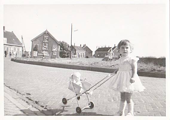 Deze foto is in 1959 genomen,ter hoogte van het Zwarte Paard. Het meisje op de foto is Sonja Bravenboer,ze woonde daar in een rijtje van zes huisjes. Waar later na een brand Huig Terlouw zijn zaak had. |